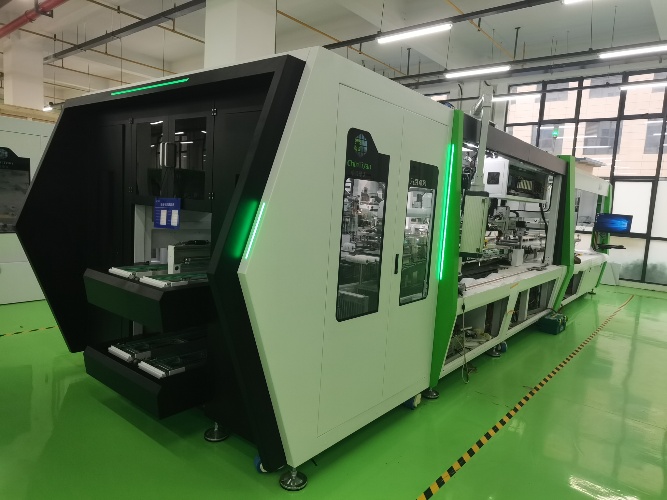 The CTM-60BC, a high-speed BC welder, is designed for automated production compatible with 166–230 (3BB-25BB) solar cell sizes. It welds 166-230 (half cells, 1/3 cells) BC solar cell strings. Equipped with PLC, servo, linear motors, four-axis industrial robots, and machine vision, it achieves fully automated processing from cell loading to string unloading.